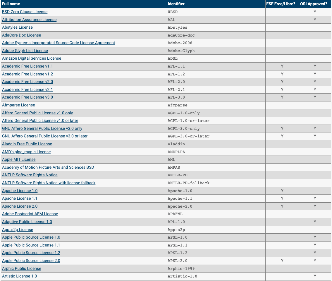 The SPDX License List is a list of commonly found licenses and exceptions used for open source and other collaborative software. The purpose of the SPDX License List is to enable easy and efficient identification of such licenses and exceptions in an SPDX document or elsewhere